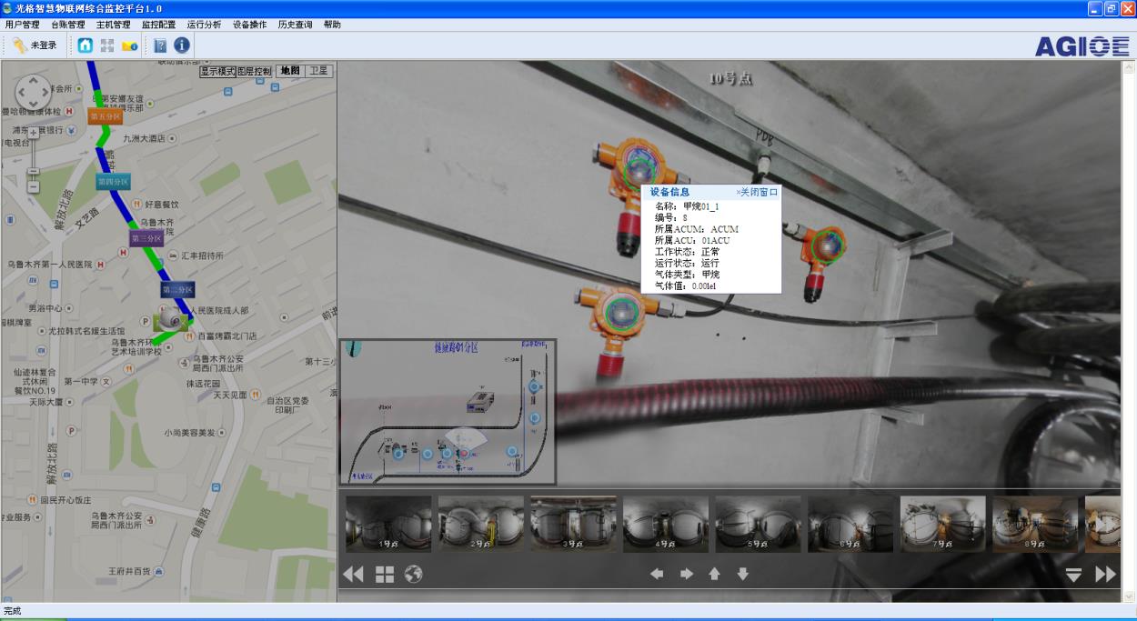 內嵌GIS模塊,支持衛星地圖,還可在地圖上顯示監測設備分布情況并準確定位。
