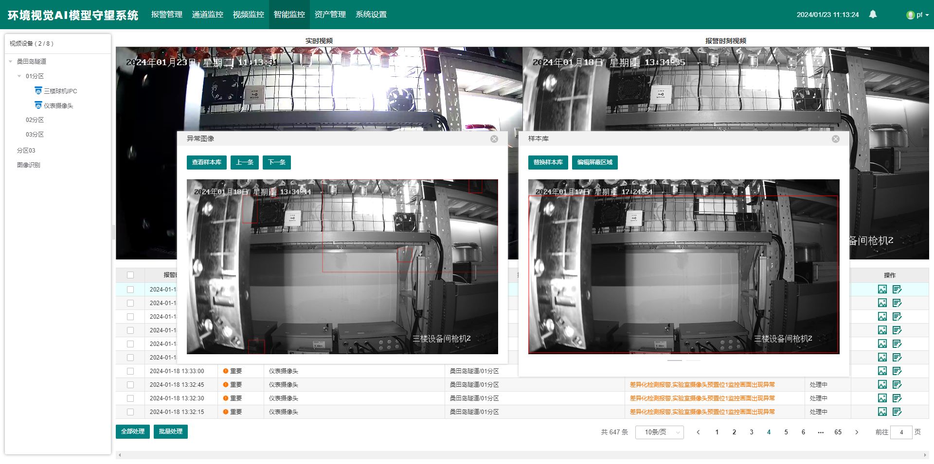 3.精準快速篩選:僅展示攝像頭捕捉到的異常畫(huà)面,大幅減少檢視攝像頭監控視頻工作量;同時(shí),平臺可根據識別出的異常生成進(jìn)一步的告警信息,支持用戶(hù)對告警信息進(jìn)行結果確認及處理,并具備異常圖片和異常視頻的查看和下載功能;